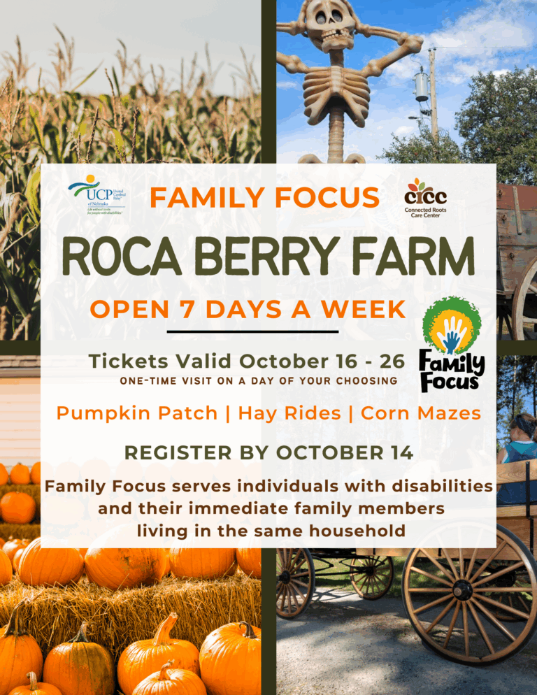 Roca Berry Farm  – Good for a one day pass! Choose the day that is best for you!! Beginning on October 16-October 26    (This event has reached capacity, registrations are no longer being accepted).